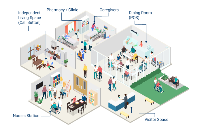 In facilities with tiered care levels – from independent living to memory and hospice care – cellular connectivity throughout improves safety and ensures anyone who needs assistance can reach someone. Add-on services like panic/call buttons and environmental sensors are easily deployed once the infrastructure is in place.