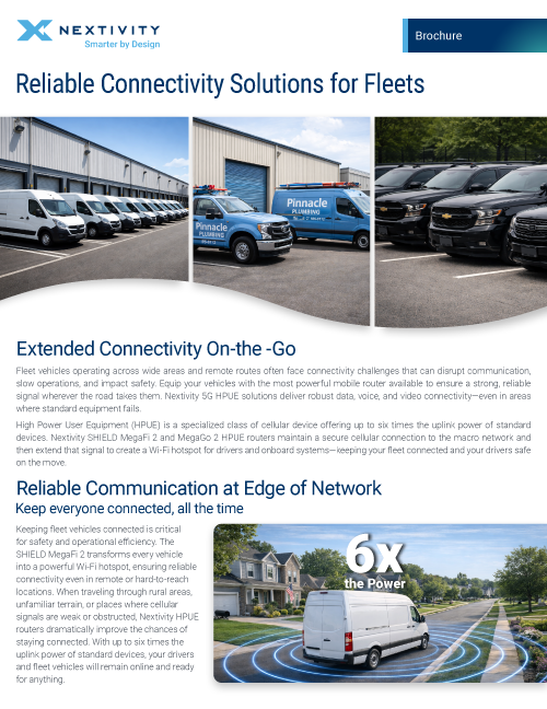 Hauling and delivery are critical functions in today’s world. Everything from food to live-saving medicines to raw materials and school supplies rely on trucks to get where they need to go. With most fleet vehicles occupied by a single driver, it’s more important than ever to keep that driver connected. A vehicle-mounted Nextivity MegaFi 2 HPUE router, can reduce dead spots and dropped calls in hard-to-reach places. Keep your drivers safe and get the delivery and vehicle data required to effectively manage your operations with the highest-power router on the market.